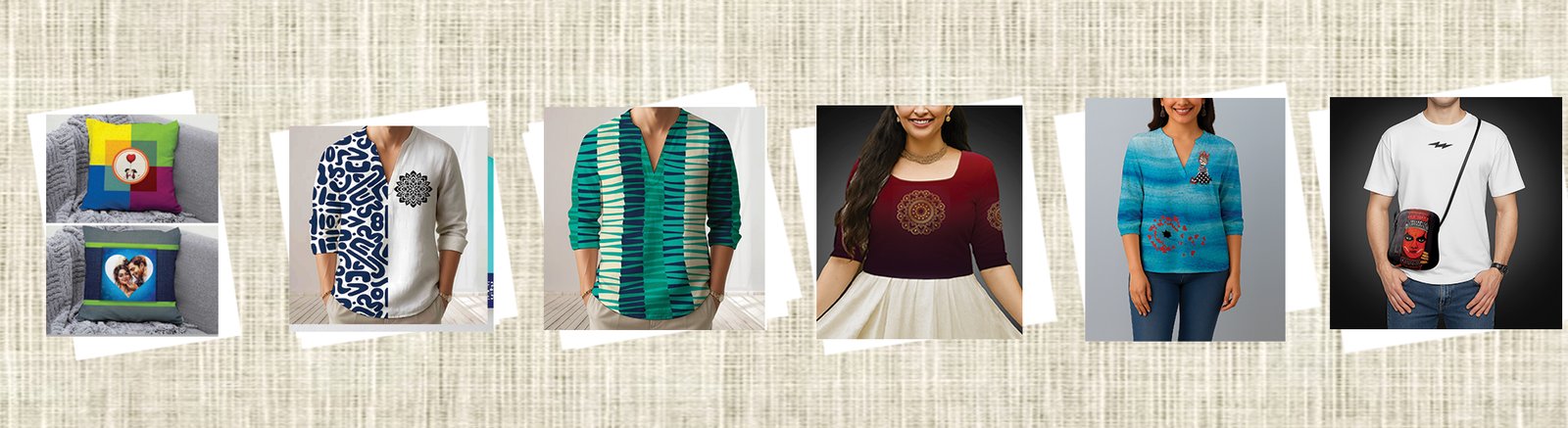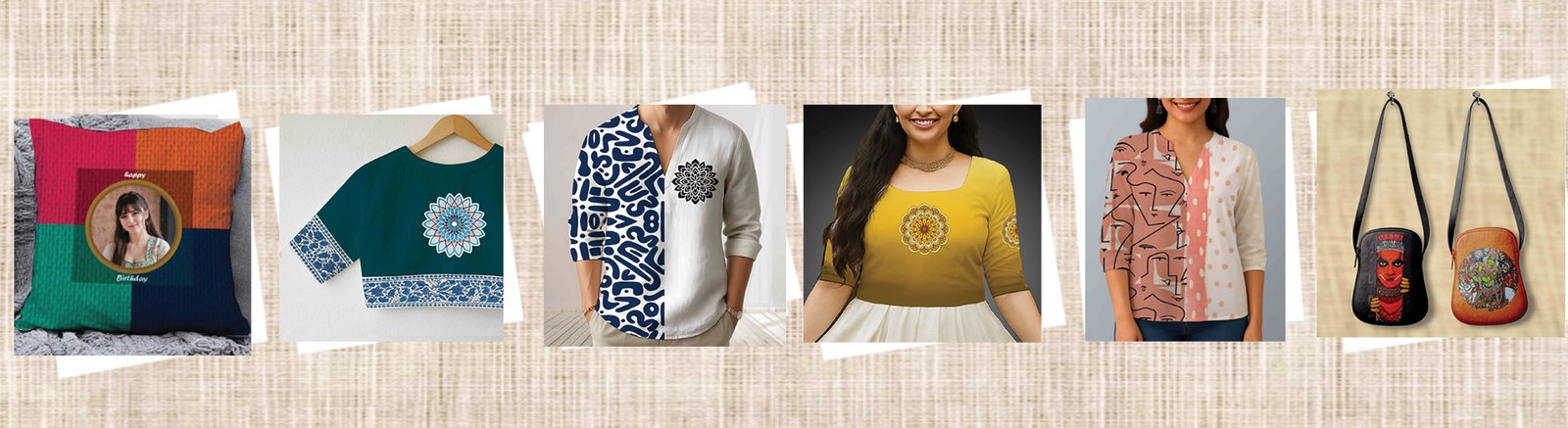 ഉപയോഗിച്ച് നിങ്ങൾ പറയുന്ന ഡിസൈനിൽ ഗിഫ്റ്റ് കുഷ്യൻ, സ്ലിംഗ് ബാഗ്, ലേഡീസ് ജെന്റ്സ് കുർത്ത,